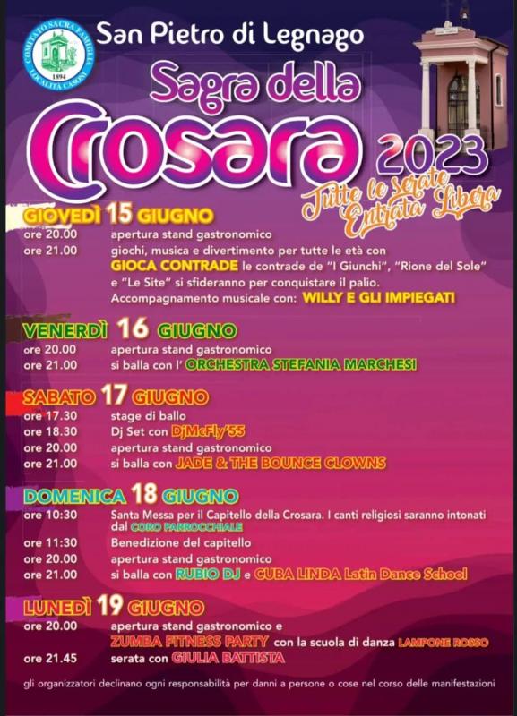 Sagra della Crosara a san Pietro di Legnago dal 15 al 19 Giugno 2023