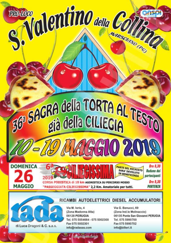 La 36a edizione della Sagra della Ciliegia e della Torta al Testo a San Valentino della Collina si svolge dal 10 al 19 Maggio 20189.