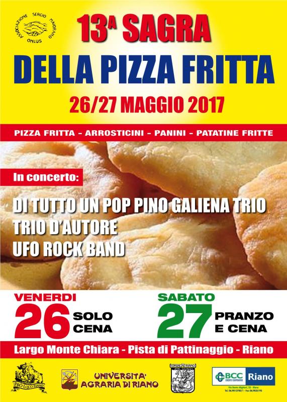 Dalla pagina facebook degli organizzatori viene comunicato che l'edizione 2018 della Sagra della pizza fritta di Riano non si terrà.