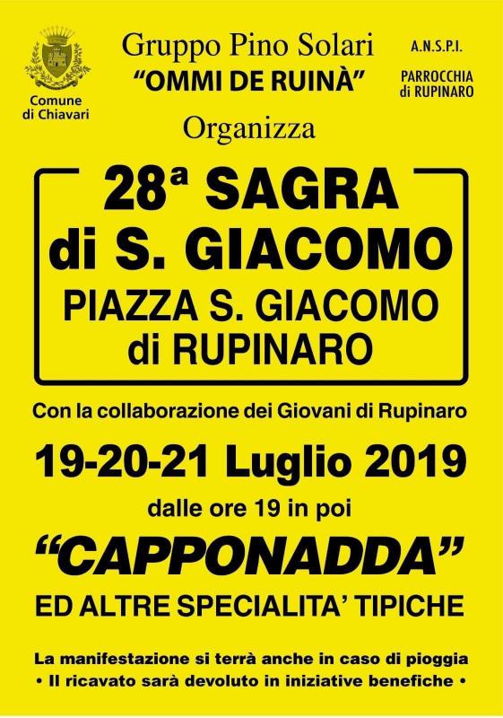 Dal 19 al 21 luglio 2019 torna la Sagra della Capponadda, ovvero la Sagra di San Giacomo di Rupinaro.