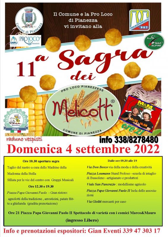 11^ Edizione Sagra dei Melicotti 4 settembre 2022 a Pianezza.