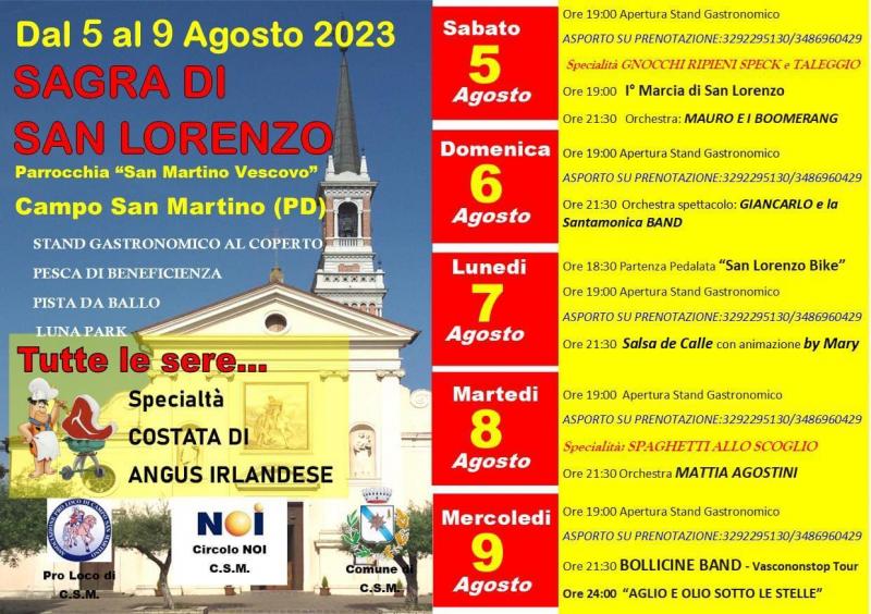 Sagra di San Lorenzo a Campo San Martino dal 5 al 9 agosto 2023