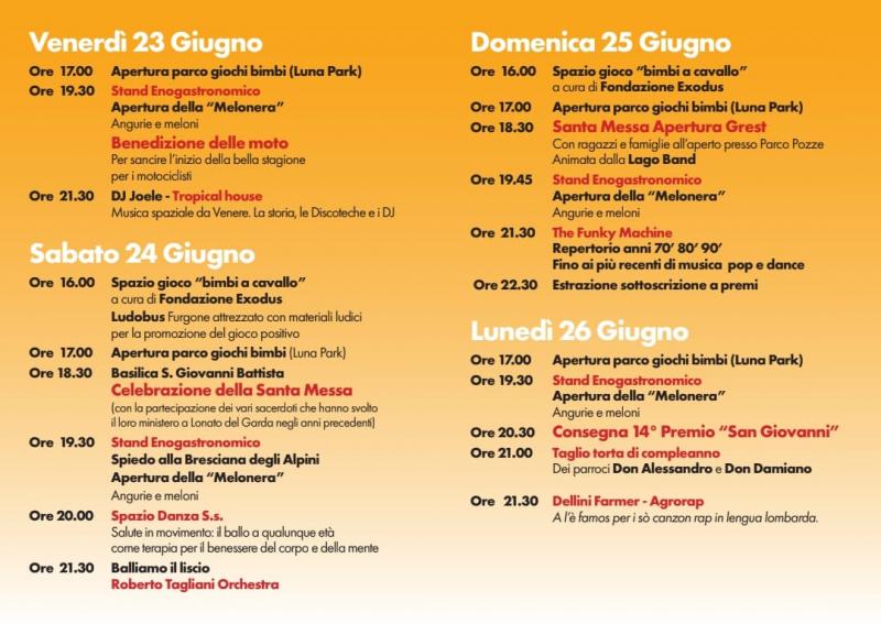 Sagra Di San Giovanni Battista a Lonato del garda dal 23 al 26 Giugno 2023