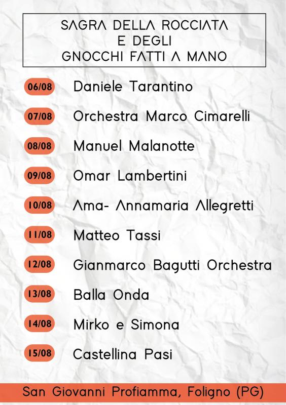 A San Giovanni Profiamma di Foligno (PG)  Sagra Degli Gnocchi Fatti A Mano dal 10 al 15 Agosto 2023.