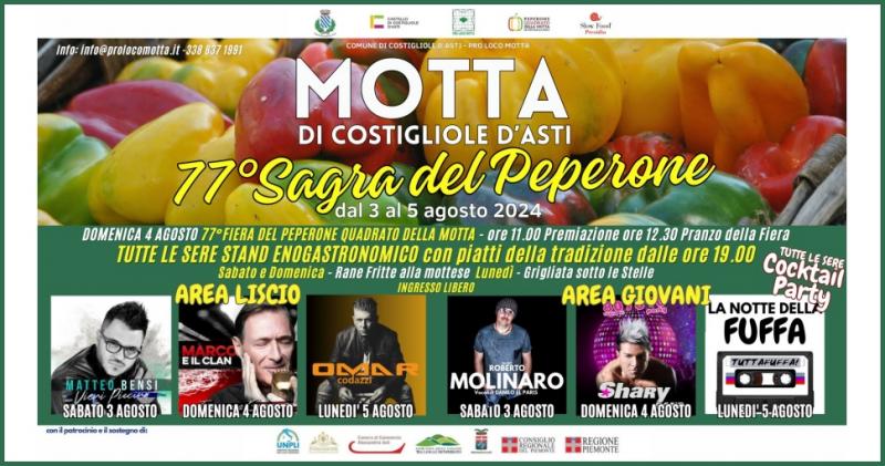 Dal 3 al 5 agosto 2024 si svolge la 77° Sagra del Peperone di Motta di Costigliole d'Asti.