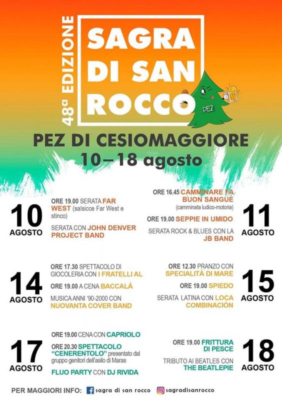 Dal 10 al 18 agosto 2019 si svolge la 478edizione della Sagra di San Rocco a Pez di Cesiomaggiore (BL).