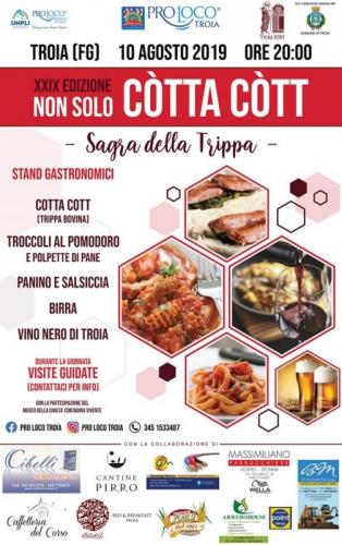 Dal 1990 la Pro Loco di Troia organizza la manifestazione eno-gastronomica “…Non solo Còtta còtt”, evento che rievoca la tradizione delle signore Filomena e Marietta che vendevano trippa bovina cotta in casa al grido “mén mén ch’è còtta còtt”.