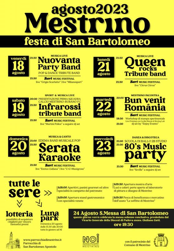 Annuale sagra parrocchiale di Mestrino dal 18 al 23 Agosto 2023