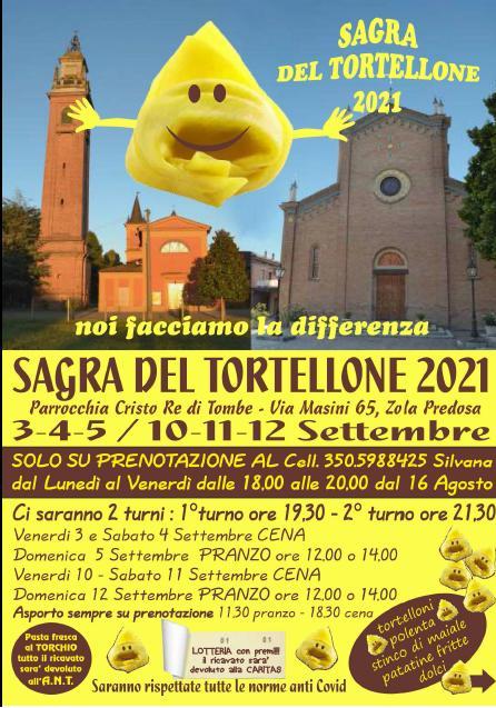 Alla Sagra del Tortellone dal 3 al 5 e dal 10 al 12 settembre 2021 presso l'area della Chiesa di Cristo Re di Tombe - Madonna dei Prati (Zola Predosa)
