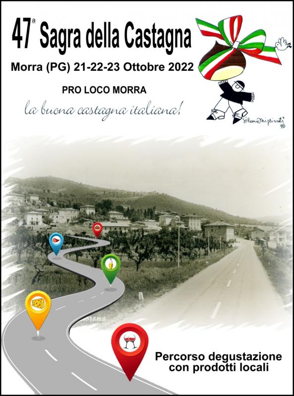 La tradizionale Sagra della Castagna a Morra di Città di Castello (PG), giunta alla 47a edizione, si svolge nei giorni 21, 22, 23 Ottobre 2022.