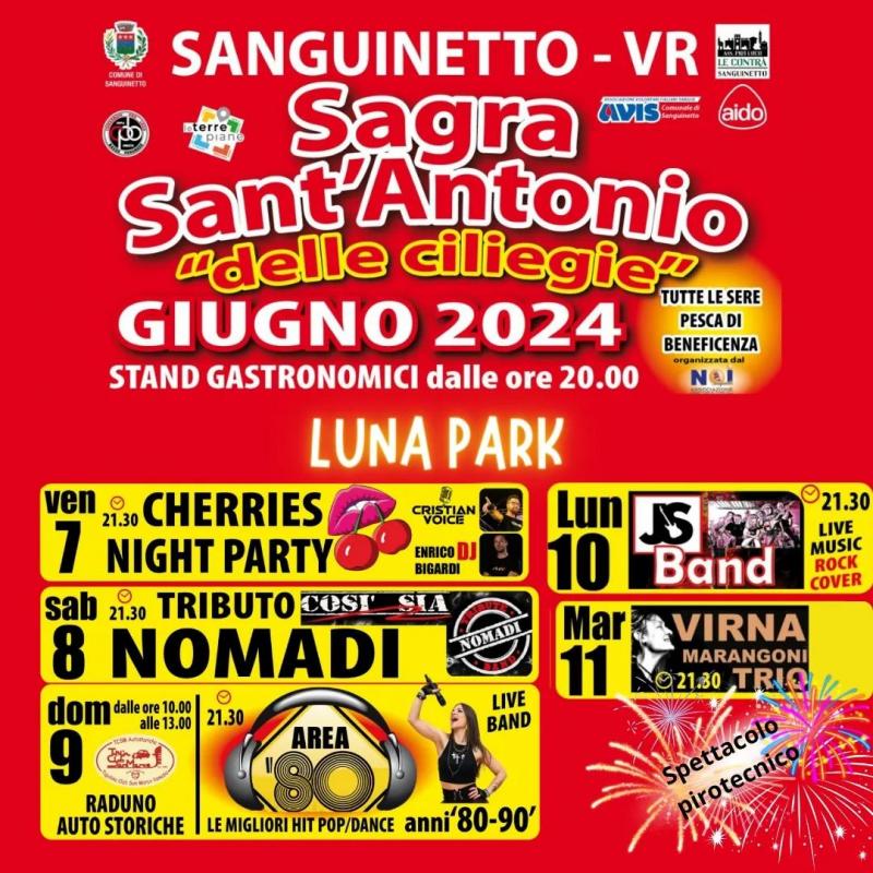 La Sagra di Sant'Antonio e Sagra delle Ciliegie di Sanguinetto (VR) si svolge nei giorni 7, 8, 9, 10, 11 giugno 2024.