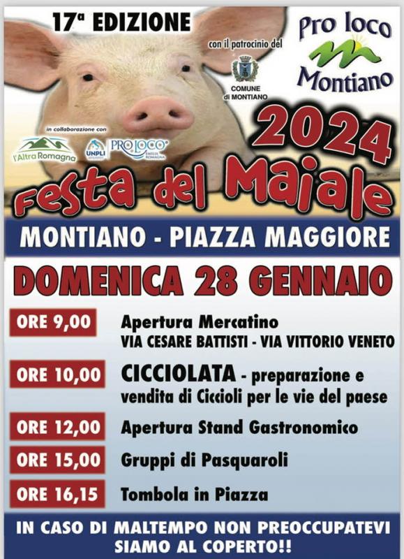 La Pro Loco di Montiano organizza Domenica 28 Gennaio 2024 la Festa del Maiale a Montiano