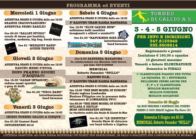 - Ore 20 inizio concorso "The best model of Europe" sfilata e defilè Miss Oktoberfest Seveso, la vincitrice andrà a Lloret de Mar