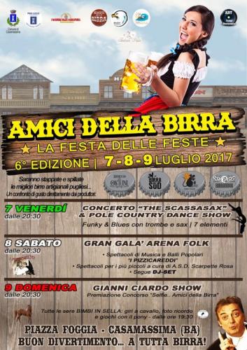 Amici della Birra sesta edizione, si è guadagnata la simpatia del grande pubblico affermandosi come festa gioiosa e aggregativa, patriconata dal Comune di Casamassima,