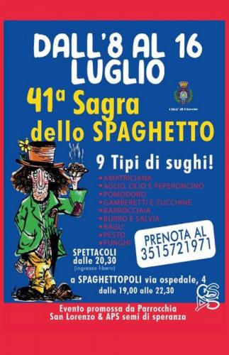Dal 08 al 16 Luglio 2023 a Giaveno, in Via Ospedale 4, dalle ore 19.00 alle 22.30 si svolge la 41a Sagra dello Spaghetto.