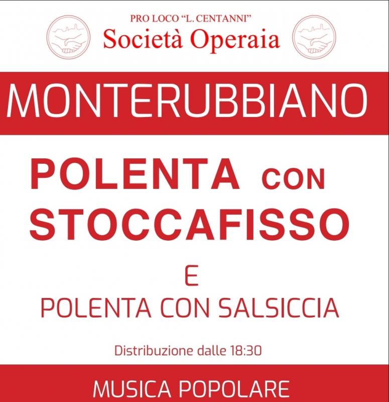 La Società operaia di Monterubbiano invita domenica 28 luglio 2019 alla Sagra della polenta con lo stoccafisso in via Oberdan a Monterubbiano (FM)