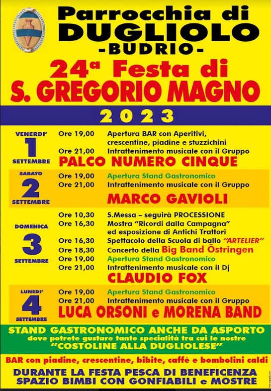 24° Sagra di San Gregorio Magno a Dugliolo di Budrio (BO) – Presso Parrocchia San Gregorio Magno - via Dugliolo n. 95