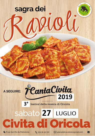 La Sagra dei Ravioli si svolgera il 27 Luglio 2019 dalle 19.00 in Piazza San Pio a Civita Di Oricola (AQ)