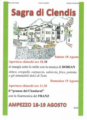 Torna la Sagra a Clendis di Ampezzo (UD) il 18 e 19 agosto 2018.
