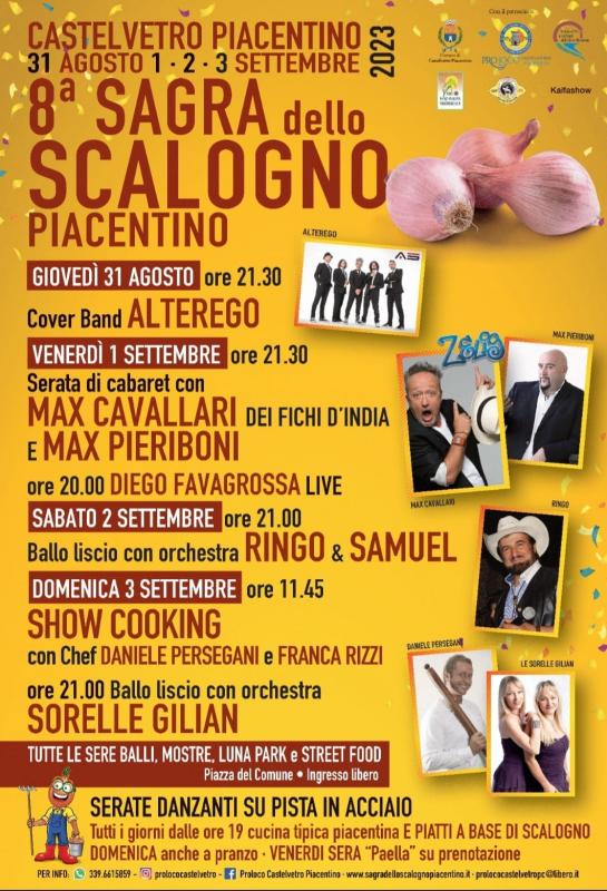 A Castelvetro Piacentino in provincia di Piacenza si svolge nei giorni 31 Agosto al 3 Settembre la 8a edizione della Sagra dello Scalogno Piacentino.