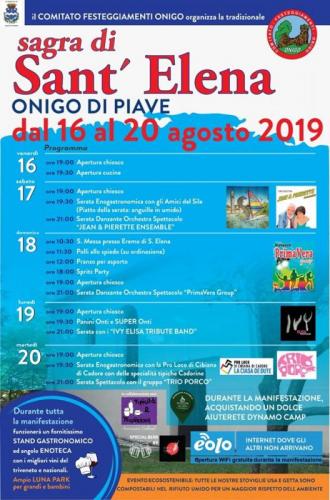 Dal 16 al 20 agosto 2019 si svolge la Sagra di Sant'Elena a Onigo di Piave, frazione di Pederobba (TV).