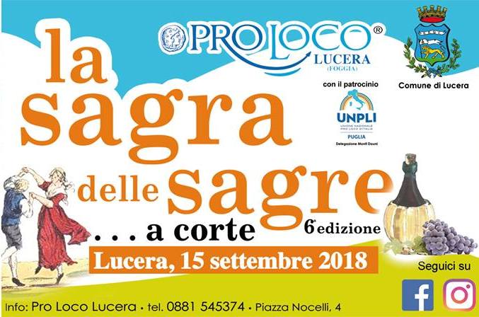 La Pro Loco annuncia dalla sua pagina facebook l'annullamento dell'edizione 2019 della Sagra delle Sagre a Lucera (FG), questo il messaggio pubblicato: