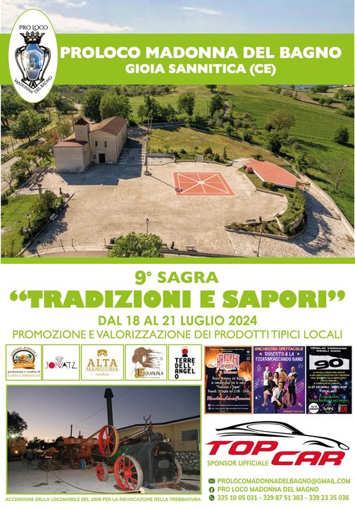 A Madonna del Bagno, frazione del Comune di Gioia Sannitica in provincia di Caserta si svolge nei giorni dal 18 al 21 Luglio 2024 la 9a edizione della Sagra "Tradizione e Sapori".