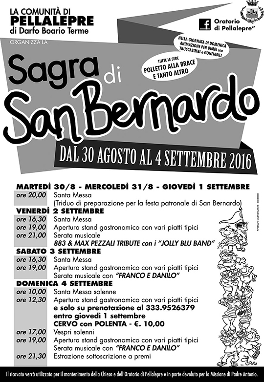 Diniego di responsabilià: le notizie riportate in questa pagina sono state fornite da Enti Pubblici e Privati e, organizzazione eventi e sagre, fiere. Suggeriamo di verificare date, orari e programmi che potrebbero variare, contattando le organizzazioni o visitando il sito ufficiale dell'evento.