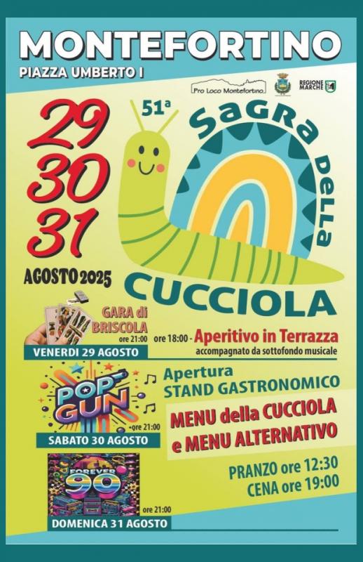 La Sagra della "cucciola" (in dialetto) o lumaca a Montefortino (FM) giunge addirittura alla sua 51a edizione. Un evento consolidato e ben conosciuto dai “gourmet” della zona e anche dagli appassionati di questo piatto dal sapore deciso che vengono da fuori regione.e vengono proposti tradizionali piatti di montagna a base di lumache, ben conditi e dall’aroma forte.