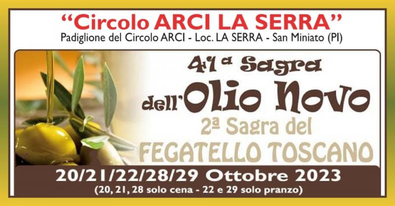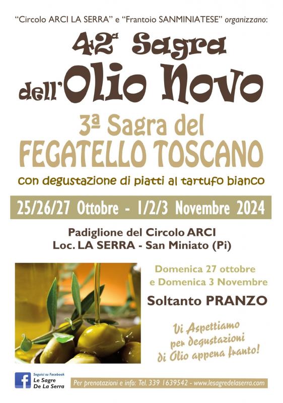 Nei giorni  24/25/26 ottobre 2025 a La Serra, frazione di San Miniato si svolge la 43a Sagra dell'Olio Nuovo e la 4a Sagra del Fegatello Toscano.