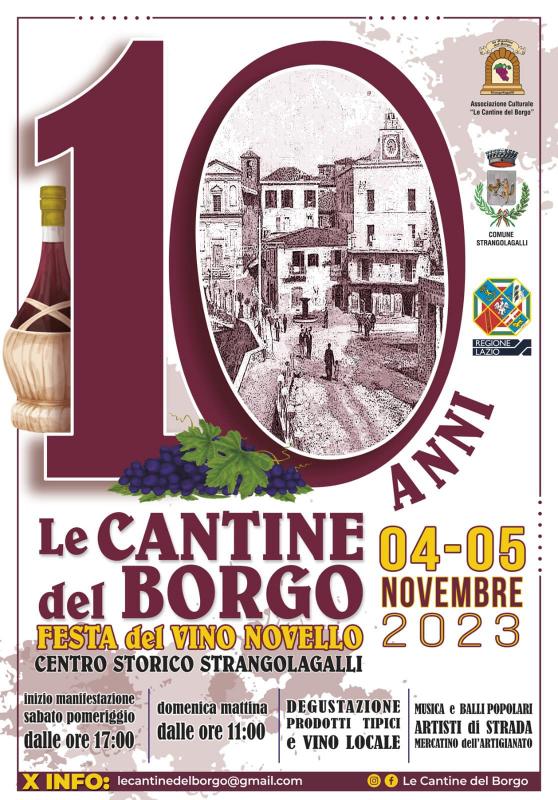 Un evento patrocinato dal Comune di Strangolagalli ed organizzato dall’Associazione Culturale “Le Cantine del Borgo”, formata da un gruppo di giovani che in forma volontaria e gratuita promuovono l’immagine turistica del loro paese grazie al supporto di aziende locali, pubblici e privati cittadini. Sin dalla prima edizione “Le Cantine del Borgo” ha riscosso un grande successo e i visitatori di volta in volta sono sempre più numerosi, provenienti anche dai territori limitrofi per visitare il paese e degustare le numerose e rinomate specialità enogastronomiche. L’ evento enogastronomico si colloca subito dopo la ricorrenza di San Martino che, per tradizione, è legata alla vendemmia e al vino novello. Una tradizione che nel piccolo borgo risale agli anni trenta/quaranta quando nel paese si celebrava la festa dell’uva. Le cantine del paese saranno quindi allestite per distribuire i prodotti tipici del territorio e vino esclusivamente locale.