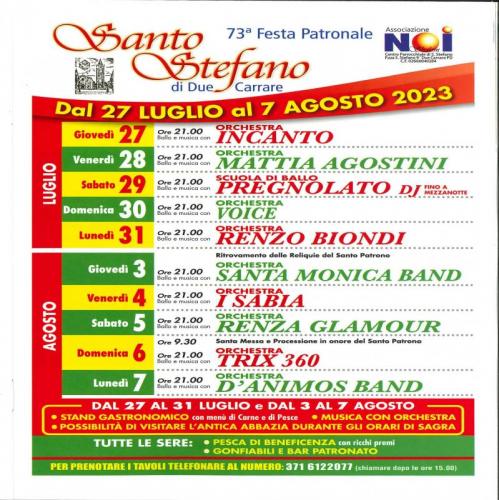 La 73ma edizione della Sagra di Carrara Santo Stefano, frazione del comune di Due Carrare (PD), si svolge dal 27 luglio al 7 agosto 2023.