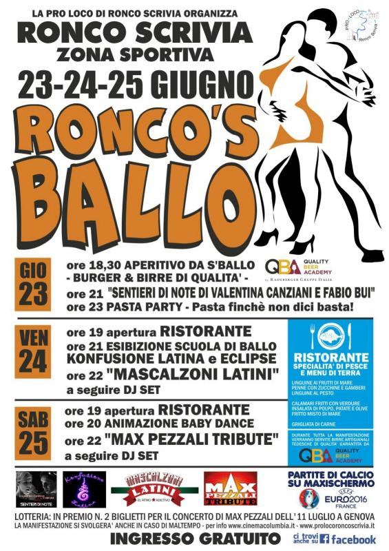 La seconda edizione di “Ronco’s Ballo“, la festa organizzata dalla Pro Loco di Ronco Scrivia, presenta anche quest’anno tre giorni ricchi di eventi che vedranno protagonisti non solo musica e concerti ma anche gastronomia e birre artigianali.