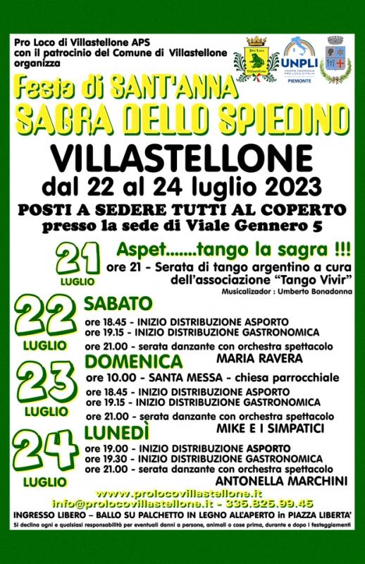 Dal 22 al 24 Luglio 2023 si rinnova l'appuntamento con la Sagra dello Spiedino e la Festa di Sant'Anna a Villastellone.