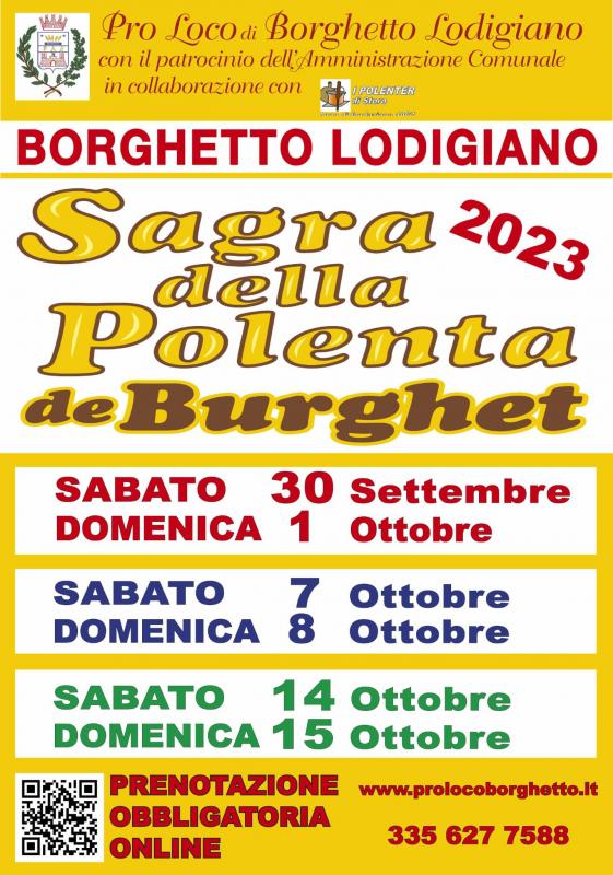 Sagra della Polenta a Borghetto Lodigiano 30 settembre e 1 - 7, 8 - 14, 25 ottobre 2023, c/o Parco della Pace