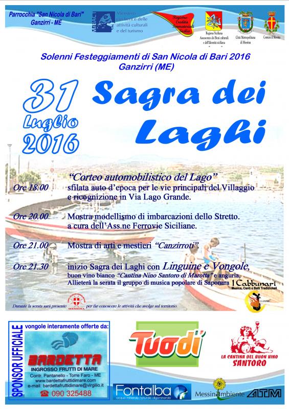 Ore 21.30: Inizio Sagra dei Laghi con Linguine e Vongole, buon vino bianco “Cantina Nino Santoro di Marotta” e anguria, allieterà la serata il gruppo di musica popolare di Saponara "I Cabbunari"