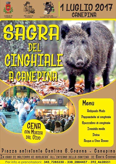 Come ormai è tradizione da qualche anno, sabato 1° luglio a Canepina, in provincia di Viterbo, si ripeterà la Sagra del Cinghiale, organizzata dalla Proloco e dal gruppo di caccia "la perla del serpente".