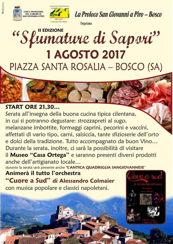 Serata all'insegna della buona tavola con piatti della tradizione cilentana e buon vino locale nel piccolo borgo di Bosco, terra ricca di storia, arte e folklore.