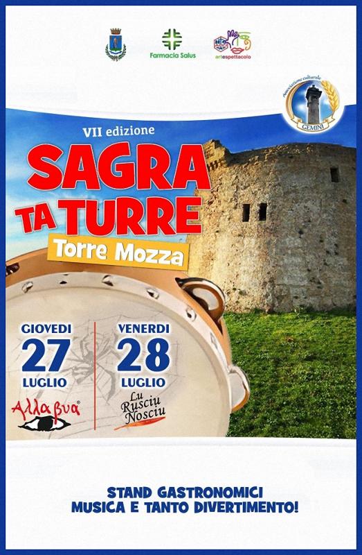 La settima edizione della Sagra Ta Turre si svolge a Ugento nelle giornate di Giovedì 27 e Venerdì 28 Luglio 2023.
