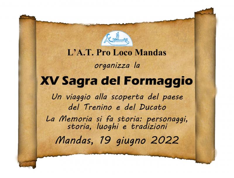 La Sagra del Formaggio, giunta alla sua XV edizione, è un evento a carattere turistico e sociale, realizzato dall' A.T. Pro Loco di Mandas, che coniuga i saperi e sapori della nostra terra, dando un particolare risalto alla produzione del formaggio. L’esaltazione degli antichi sapori, grazie alla promozione e alla valorizzazione delle eccellenze tipiche del territorio è l’obiettivo che da sempre si prefigge la “Sagra del Formaggio”. Il centro storico di Mandas verrà animato con allestimento stand, mostre, laboratori, dimostrazioni di antichi mestieri, degustazioni, animazione musicale e folkloristica, per tutta la giornata di domenica 22 settembre 2019 con i profumi e i sapori di una tradizione antichissima, regalando un’atmosfera di emozioni in un clima accogliente.