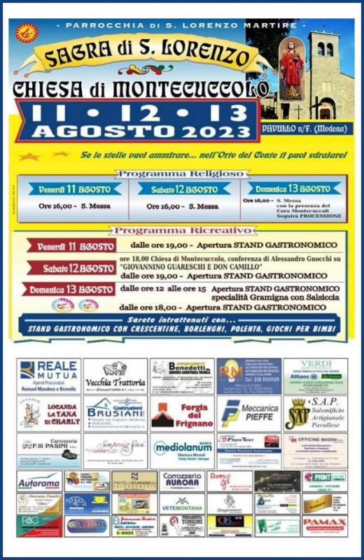 SAGRA DI SAN LORENZO venerdì e sabato dalle 19 alle 23, domenica dalle 12 alle 14.30 e dalle 19 alle 23