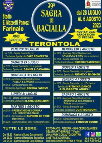 A Terontola di Cortona (AR) dal 28 luglio al 6 Agosto 2023 si terrà la 29a edizione della Sagra di Bacialla.