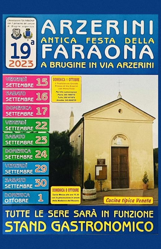La 19a edizione dell'Antica Festa della Faraona si svolge a Brugine per tre fine settimana: 15/16/17 - 22/23/24 - 29/30 Settembre e 01 Ottobre 2023.