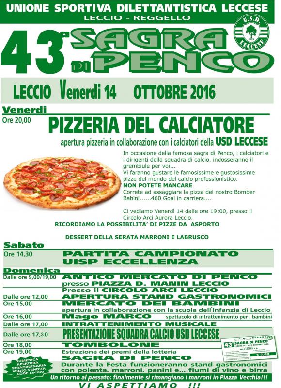L'U.S.D. Leccese invita dal 14 al 16 ottobre a Leccio per la 43^ Sagra di Penco.