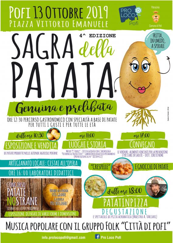 Domenica 13 ottobre 2019 si svolgerà a Pofi (FR) l’atteso evento sinonimo di buona cucina ed allegria, con un’attenzione particolare al folklore, alla cultura ed alle eccellenze del territorio: LA SAGRA DELLA PATATA, un’occasione per riscoprire i sapori di un lontano passato.