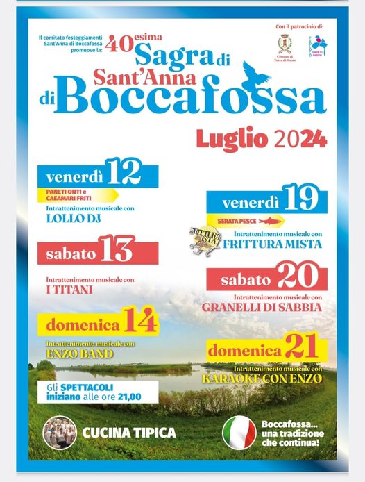 Sagra di Sant’Anna di Boccafossa a Torre di Mosto 12, 13, 14 - 19, 20, 21 Luglio 2024