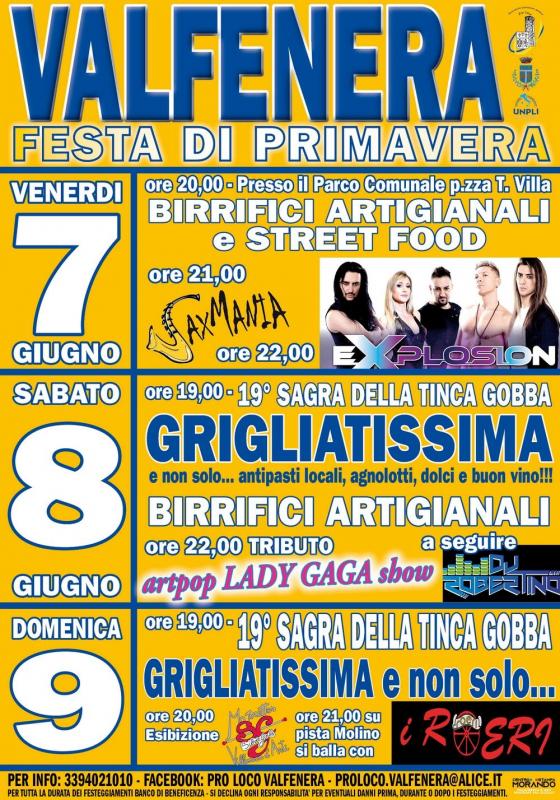 E tra poco parte la Festa di primavera a valfenera dal 7 al 9 Giugno . Nella locandina trovate i dettagli!