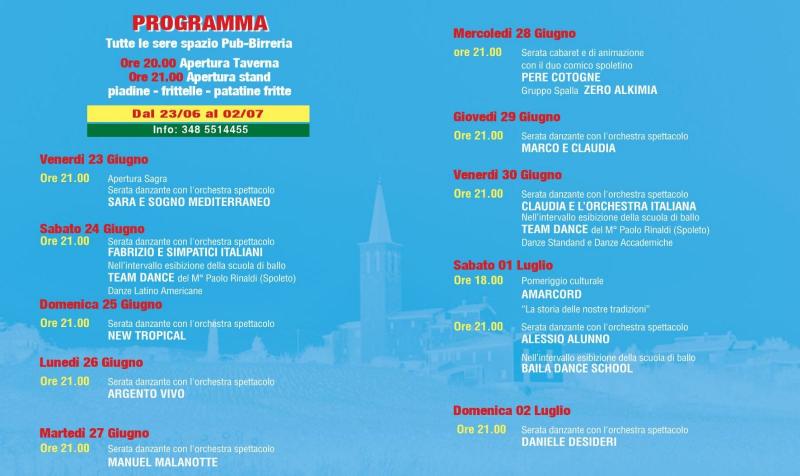 Dal 23 giugno al 2 luglio 2022 si svolge la 35^ Sagra degli gnocchi, del suino e del trebbiano spoletino a San Brizio di Spoleto.