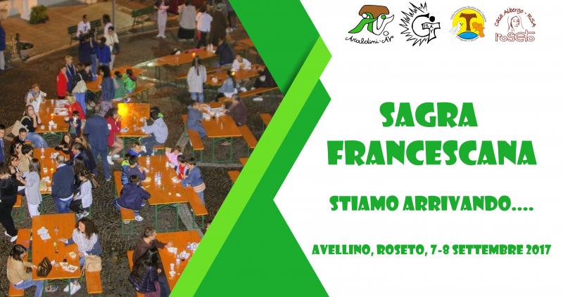 La comunità parrocchiale del Roseto di Avellino in via Zoccolari è lieta di invitarvi all’annuale “Sagra Francescana” che si terrà il 7 e l’8 settembre 2017. Non perdete l’occasione di degustare uno squisito menù casereccio a base di fusilli al ragù di cinghiale, il tipico caciocavallo “impiccato” della tradizione irpina, panini farciti con wurstel, cotechino o salsiccia affiancato da contorno di melanzane o friarielli, patatine fritte. Il tutto sarà accompagnato da bibite fresche (vino, birra, acqua e coca cola) e squisiti dolci. Le serate saranno allietate da intrattenimento di ogni tipo: da quello musicale per adulti e ragazzi a quello per i più piccoli, caratterizzato dalla presenza di simpatici animatori che impegneranno i bambini in fantasiosi laboratori ed entusiasmanti “dancing moments”, permettendo agli ospiti di tutte le età di godersi le serate. E non è finita, non perdete l’occasione di partecipare alla nostra fantastica lotteria: il primo premio sarà un meraviglioso ed innovativo tablet. Vi aspettiamo, non potete mancare !