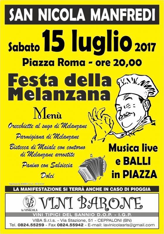 Sabato 15 Luglio 2017 in Piazza Roma di San Nicola Manfredi si terrà la FESTA DELLA MELANZANA